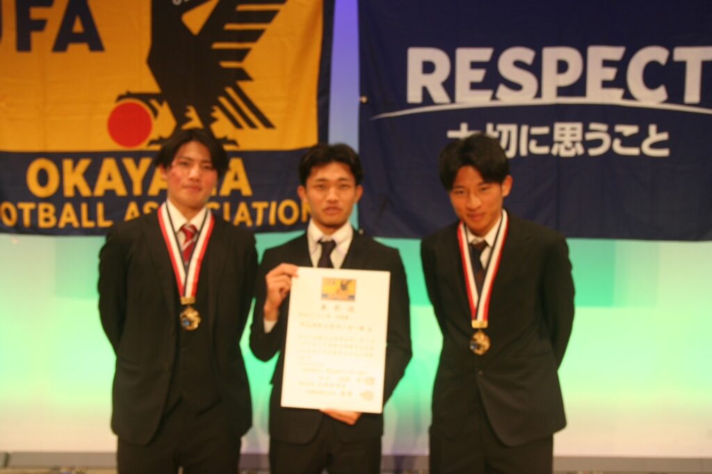 今シーズン、粘り強い戦いを見せた本学サッカー部は、激戦の岡山県1部リーグを2位という好成績で終えました。また、リーグを通じて卓越したパフォーマンスを披露した以下の3名が、2025年度の「ベストイレブン」として表彰されました。